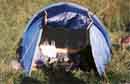 | Silvius vylieza ráno zo stanu.