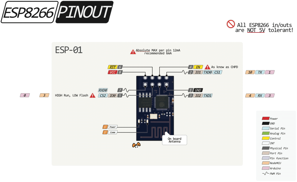 - ESP8266: ESP-01, ESP-01S