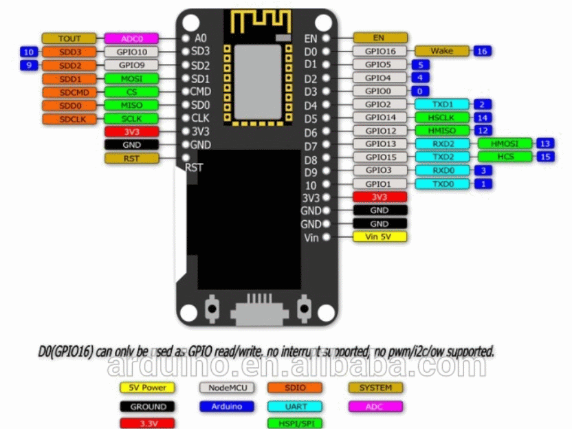 - BUILTIN_LED = GPIO16 (blue inverted)