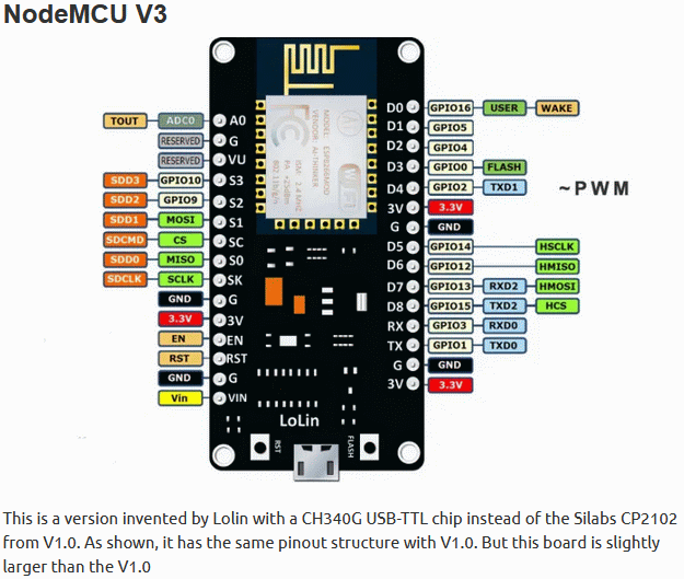 ESP8266 - Wemos NodeMCU V3, ESP8266, 32M Flash Extra Memory, CH340G